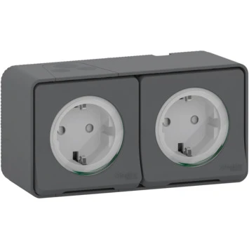 Schneider Electric Mureva Styl wandcontactdoos 2-voudig horizontaal IP55 antraciet.