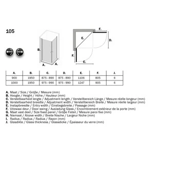 Deze cabine heeft een verstelbaarheid buitenzijde profiel van 87,5 tot en met 89 cm.
