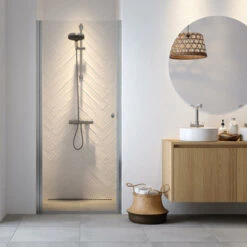 Je kunt kiezen of je de deur links- of rechtsdraaiend plaatst. Bovendien draait de zelfsluitende douchedeur zowel naar binnen als naar buiten, zodat je de vrije ruimte in je badkamer optimaal benut. De douchedeur is 100 cm breed, 200 cm hoog en schroef je met de meegeleverde bevestigingsmaterialen aan de muur.