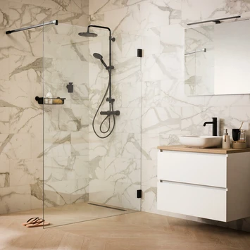 De volledig profielloze serie ‘I AM’ is met recht een transparante alleskunner. Naast diverse standaard maatvoeringen zijn talloze maatwerkoplossingen mogelijk. Zo kunnen we de breedte en hoogte aanpassen, maar bijvoorbeeld ook eventuele schuintes in de muren of het plafond opvangen. Deze Sealskin Inloopdouche I AM A3 120×200 cm Zwart (divider) is het toppunt van kwaliteit en transparantie. Wat deze wand écht bijzonder maakt, is de matzwarte afwerking. Zo breng je een unieke sfeer in je badkamer. Het veiligheidsglas van maar liefst 8mm is altijd voorzien van een antikalk laag waardoor kalk en viezigheid zich minder snel zal hechten. Deze Walk in type A3 is tevens beschikbaar in de standaard maten 900 en 1000mm en natuurlijk in maatwerk. Daarnaast is deze inloop douche beschikbaar in een stoere RVS uitstraling en in een luxueuze zilver hoogglans afwerking.