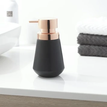 Uitgevoerd in zwart met brons voor de trendy badkamer.