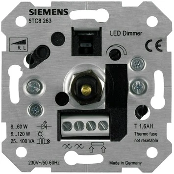 Dimmer basiselement uit de Siemens Delta i-system-serie. Met deze LED-dimmer kunt u LED-lampen van 6 tot 60 watt dimmen. Deze veelzijdige dimmer heeft een druk aan/druk uit systeem en kan ook gebruikt worden in combinatie met wisselschakelaars. Dit betekend dat u vanuit twee plekken uw lampen aan of uit kan zetten als u deze dimmer gebruikt in combinatie met een wisselschakelaar. De dimmer kan ook gebruikt worden met gloei- en halogeenlampen van 6 tot 120 watt. Centraalplaat voor dit basiselement is los leverbaar in diverse kleuren.