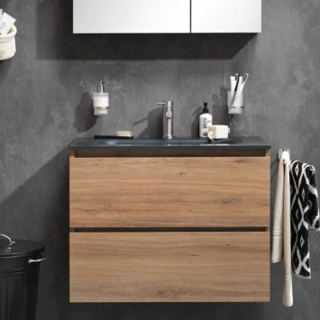 Tiger Badmeubel Karlo Chalet Eik Met Zwarte Wasbak 80 Cm