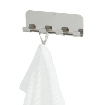 De Tiger Haak Colar 4-delig Chroom is uitgevoerd in gepolijst rvs. De haak is voorzien van een krachtige dubbelzijdige tape waardoor montage op iedere gladde, stevige ondergrond zeer eenvoudig is. De Colar serie bevat tevens een dubbele haak, maar ook een groot aantal aanvullende accessoires voor de badkamer en toiletruimte in dezelfde stijl. Alle artikelen uit de Colar serie zijn ook verkrijgbaar in rvs geborsteld.