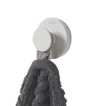 De Tiger Haak Urban Groot Wit is uitgevoerd in de kleur mat wit en wordt geleverd met twee decorringen. De decorringen, in de kleur licht eiken en grijs, maken het mogelijk een subtiel kleuraccent toe te voegen. Het is ook mogelijk de haak zonder de decorring te monteren waardoor het zeer eenvoudig is om het product aan de gewenste stijl aan te passen. Bij de montage van het artikel wordt gebruik gemaakt van een muurplaatje waardoor de bijgeleverde bevestigingsmaterialen uit het zicht verdwijnen. De Urban serie bevat tevens een kleine haak voorzien van dubbelzijdige tape, maar ook een groot aantal aanvullende accessoires voor de badkamer en toiletruimte. Alle in dezelfde stijl. De artikelen uit de serie zijn ook in de kleur mat zwart verkrijgbaar, waarbij natuurlijk ook weer diverse decorringen worden meegeleverd. De haak groot is tevens geschikt voor montage met TigerFix type 1, waarmee accessoires snel en eenvoudig op een gladde, harde ondergrond te bevestigen zijn door middel van een gepatenteerd lijmsysteem. Boren is niet noodzakelijk en de accessoires zijn eenvoudig te verwijderen zonder dat er resten op de ondergrond achterblijven. TigerFix is los verkrijgbaar.