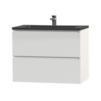 Tiger Karlo Badkamermeubel 80 Cm Hoogglans Wit Met Wastafel Zwart Blad