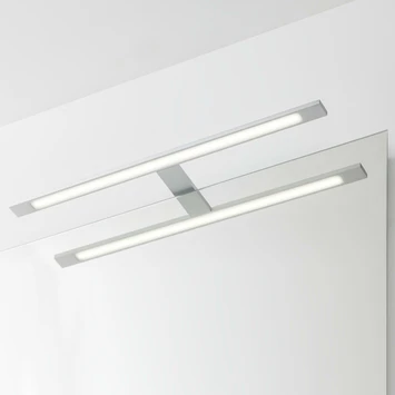 De Tiger Spiegelverlichting Ancis Mat Chroom 60 cm is een strakke designlamp die je badkamer voorziet van luxueus licht. De Ledlamp met een lichtopbrengst van 780 Lumen voorziet je van het nodige licht bij het scheren of aanbrengen en verwijderen van make-up. De lichtkleur van 4000 Kelvin, die overeenkomt met daglicht, wordt bovendien aangeraden door visagisten. Met de energiezuinige LEDlamp die slechts een verbruik heeft van 13,2 Watt en een levensduur van 20.000 branduren is deze spiegellamp een zeer economische aankoop. De lamp is vocht- en corrosie bestendig en IP44 bestendig tegen spattend water boven de wastafel. Door de geïntegreerde transformator is deze spiegellamp direct aan te sluiten op het lichtnet. Monteerbaar bovenop spiegel of spiegelkast.