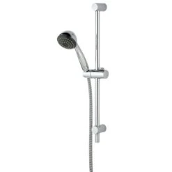 De doucheset Murcia van Tiger bestaat uit een handdouche, doucheslang en -stang met handdouchehouder en verstelbare muursteunen. De handdouche heeft een diameter van 8,5 cm. De ronde en bolle douchekop geeft een retro-look en is uitgevoerd in chroom. Door de siliconen nopjes kan je kalk makkelijk met de hand afvegen. Door de toepassing van Neoperl® technologie bespaar je tot 40% water. Deze technologie zorgt er met een dynamische o-ring voor dat er altijd een constante hoeveelheid water doorgelaten wordt. Bij een hoge druk wordt veel water bespaard, bij lage druk wordt het comfort juist verhoogd door lucht toe te voegen aan het uitstromende water. Je bespaart dus water en je doucht altijd comfortabel. Met de handdouchehouder stel je eenvoudig de hoogte van de douche in. Door de siliconen nopjes kan je kalk makkelijk met de hand afvegen. Doordat 1 muursteun verstelbaar is, kun je de set over je oude boorgaten vastschroeven. De doucheslang heeft een universele 1/2″aansluiting en past op elke douchekraan. Dit product is onderdeel van het Splash eco assortiment: een Tiger lijn met waterbesparende producten.