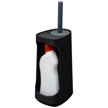 Deze zwarte wc-borstelhouder van Tiger Tess is de held van de sanitaire ruimte. Hij is ontworpen om jouw badkamer en toilet te voorzien van meer gemak. Snel even het toilet schoonmaken? Geen probleem, deze toiletborstelhouder heeft een handig opbergvak voor een fles toiletreiniger. Na gebruik zet je hem weer eenvoudig terug in het compartiment. Draai hem om en hij staat uit het zicht. Zo eenvoudig kan het zijn. Deze houder is voorzien van de nieuwe Swoop® flexibele toiletborstel. Met deze innovatieve borstelkop reinig je met gemak moeilijk bereikbare plekken en dankzij de vorm en het speciale materiaal van de borstel blijft er geen viezigheid achter en druppelt hij nauwelijks na als je hem terug in de houder plaatst. Tiger Tess is innovatief en eigentijds met de herkenbare kwaliteit van Tiger.