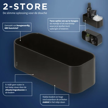 Schuif het bakje op het muurplaatje en je kunt altijd afwisselen. Het wandbakje is gemaakt van kunststof en kan dus niet roesten. Door de waterafloop onderin kun je het bakje gemakkelijk schoonhouden zodat het douchemandje jarenlang mooi blijft. De zwarte kleur geeft een stoere twist aan je badkamer en is makkelijk te combineren met andere accessoires.