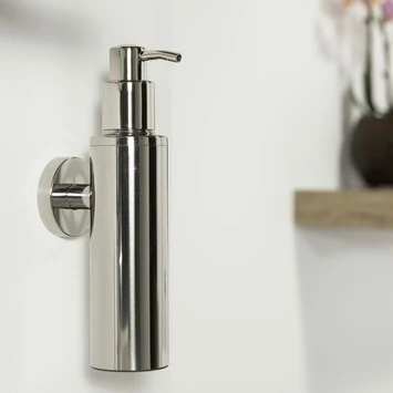 De Tiger Zeepdispenser Boston Hangend Chroom van de accessoire serie Boston is uitgevoerd in glanzend RVS, en is ook verkrijgbaar in geborsteld RVS. De zeepdispenser bevat een uitneembare kunststof binnenfles, dit vereenvoudigt het vullen en het schoonmaken. Dit product kan aan de wand worden geschroefd, maar kan ook met behulp van Tigerfix 1 op een gladde en harde ondergrond geplakt worden. Je hoeft dus niet te boren. (Tigerfix is los verkrijgbaar). Er zijn van deze serie diverse sanitair accessoires verkrijgbaar, waaronder verschillende maten Boston zeepdispensers, inclusief de kleinere versie voor het toilet. Dit product maakt deel uit van het Boston totaalconcept, dat verder bestaat uit kranen, badmeubelen, douche accessoires en douchecabines, alles in de Boston stijl.