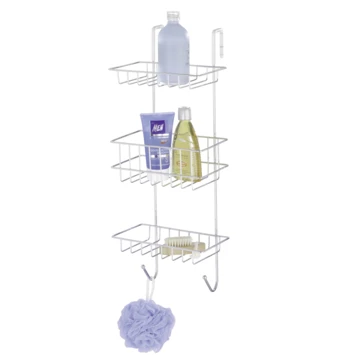 Met de Revigo doucherek Chroom van hoogwaardig staal creëer je eenvoudig extra opbergruimte in de douche zonder te boren. Het doucherek kan eenvoudig aan de douchewand worden ophangen door middel van twee haken. De afstand tussen de haken is 15 cm. Het doucherekje in zwart bestaat uit drie mandjes met drie verschillende hoogtes. Zo er is altijd plaats voor verschillende soorten producten zoals zeep, shampoo of spons. Onderaan de doucherek zijn er nog een twee haken voor het ophangen van bijvoorbeeld een borstel of washandje. De Revigo doucherek is naast chroom ook beschikbaar in zwart gelakt staal.
