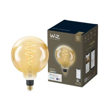Met deze slimme, goudkleurige, grote bolvormige WiZ LED-filamentlamp kies je heel eenvoudig uit verschillende tinten warmwit tot koelwit licht. Die helpen je ontspannen of juist concentreren. Je kunt timers instellen die je lampen automatisch in- of uitschakelen, gebaseerd op jouw dagritme. Bijvoorbeeld helder wit licht in de ochtend en zacht warm licht in de avond. Je kunt ze bedienen met je smartphone of stem, zelfs als je niet thuis bent. WiZ lampen werken op je eigen wifinetwerk. Meer heb je niet nodig. Deze lamp heeft een E27-fitting, en past dus in de meeste lampen met grote fitting.