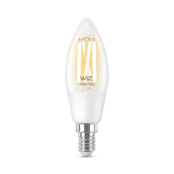 Deze slimme kaarsvormige WiZ LED-filamentlamp zorgt voor sfeer in huis. Kies heel eenvoudig uit verschillende tinten warmwit tot koelwit licht, die je helpen met ontspannen of juist concentreren. Je kunt timers instellen die je slimme lampen automatisch in- of uitschakelen gebaseerd op jouw dagritme, bijvoorbeeld helder wit licht in de ochtend en zacht warm licht in de avond. Je kunt ze bedienen met je smartphone of stem, zelfs als je niet thuis bent. WiZ lampen werken rechtstreeks vanuit de doos, op je eigen wifinetwerk. Deze lamp heeft een E14-fitting, en past dus in de meeste lampen met kleine fitting.