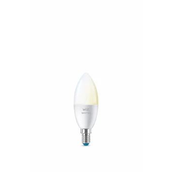 Deze slimme WiZ LED-kaarslamp met instelbaar wit licht maakt het leven gemakkelijker. Stel verschillende tinten warmwit tot koelwit licht in die je helpen ontspannen of juist concentreren. Je kunt timers instellen die je lampen automatisch in- of uitschakelen gebaseerd op jouw dagritme. Bijvoorbeeld helder wit licht in de ochtend en zacht warm licht in de avond. Je kunt ze bedienen met je smartphone of stem, zelfs als je niet thuis bent. WiZ lampen werken op je eigen wifinetwerk. Meer heb je niet nodig. Deze lamp heeft een E14-fitting, en past dus in de meeste lampen met kleine fitting.