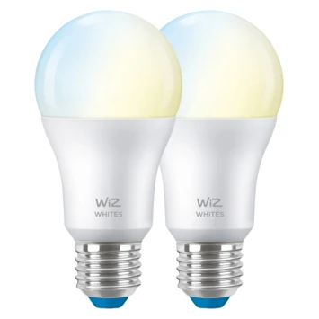 Begin eenvoudig met slimme verlichting met deze twee WiZ LED-lampen. De peervormige lampen geven zowel warm- als koelwit licht, wat je helpt ontspannen of concentreren. Schakel je lampen automatisch in of uit met handige timers, gebaseerd op jouw dagritme. In de ochtend stel je bijvoorbeeld helder wit licht in en ’s avonds zacht warm licht. WiZ lampen werken op je eigen wifinetwerk en kan je bedienen met je smartphone of je stem, zelfs als je niet thuis bent. Beide lampen hebben een E27-fitting, die past in de meeste lampen met grote fitting.