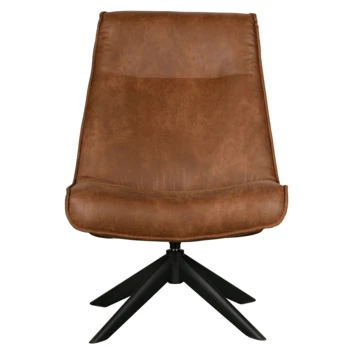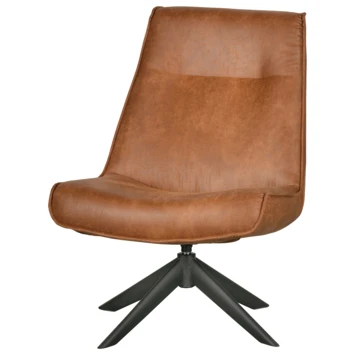 De Skyler draaifauteuil van WOOOD is een echte eyecatcher met zijn luxe uitstraling en zachte vormen. Skyler heeft een jaren ’70 uitstraling met een moderne twist. De zitting en rugleuning zijn bekleed met een PU lederen stof (100% polyester) in een warme cognac kleur. Het stalen onderstel is heeft een zwarte poedercoating. Skyler heeft een groot zitcomfort en nodigt uit om te relaxen!